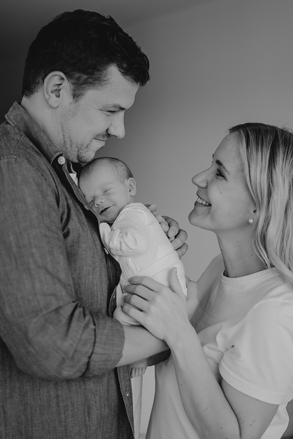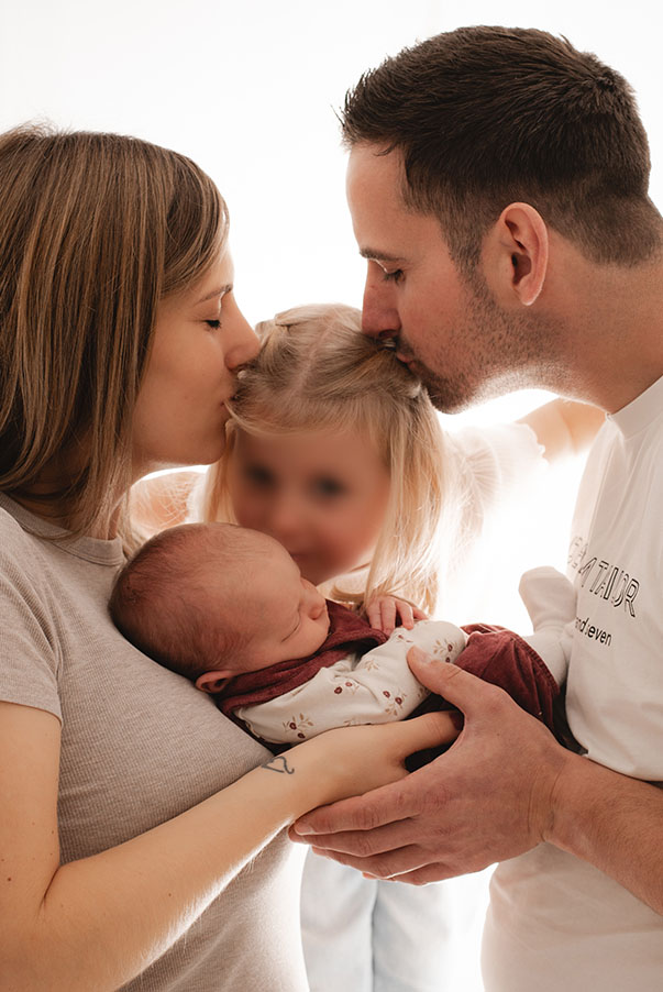 Ich retuschiere die Fotos äußerst dezent und natürlich. Dabei entferne ich eventuelle Kratzer, Pickelchen oder minimiere eventuelle Augenringe der Eltern